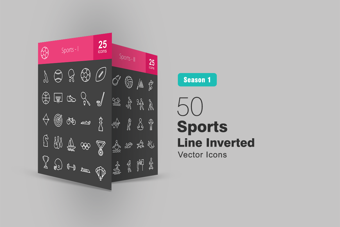 Download Набор иконок "50 Sports Line Inverted Icon Set" / 50 Sports Line Inverted Icon Set - Набор иконок на тему графика sports icon fitness games cricket football hockey tennis badminton board basketball baseball soccer golf billiard snooker exercise swimming iconbunny flat