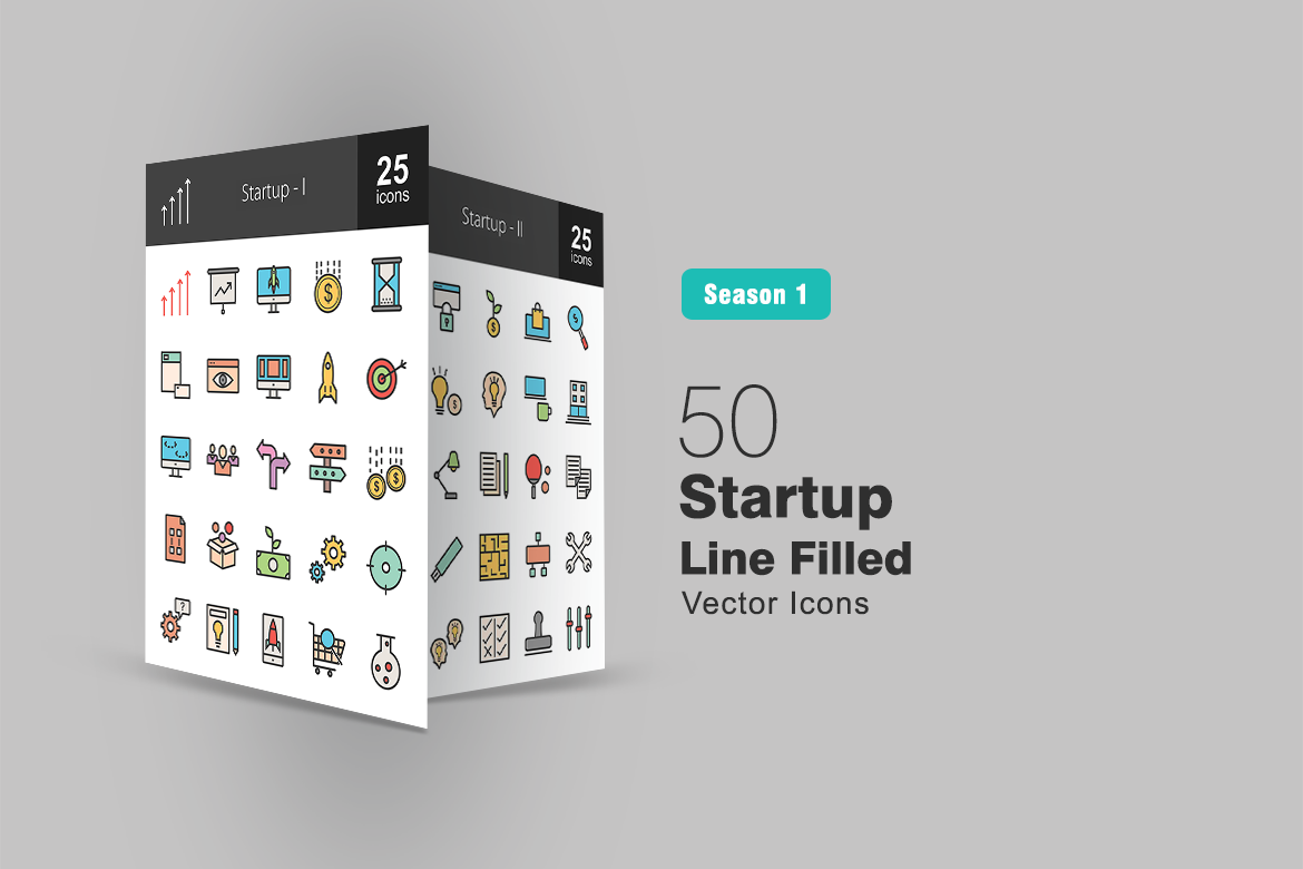 Download Набор иконок "50 Startup Filled Line Icon Set" / 50 Startup Filled Line Icon Set - Набор иконок на тему графика growth,icon,launch,funding,timer,contact,web,design,application,target,code,employees,business,invest,planning,product,profit,mission,support,idea