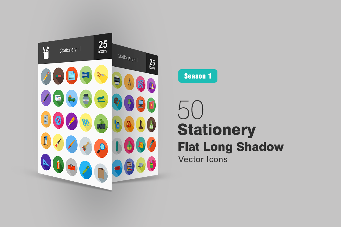 Download Набор иконок "50 Stationery Flat Long Shadow Icon Set" / 50 Stationery Flat Long Shadow Icon Set - Набор иконок на тему графика stationery icon pencil eraser sharpener pen card tape stapler ink scissors notebook scale paper clip test tube paint brush magnifying