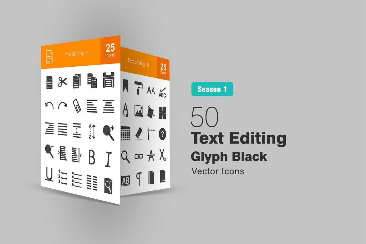 Download Набор иконок "50 Text Editing Glyph Icon Set" / 50 Text Editing Glyph Icon Set - Набор иконок на тему графика text icon file cut copy paste save undo redo attach align line spacing sort zoom bookmark list preview print iconbunny
