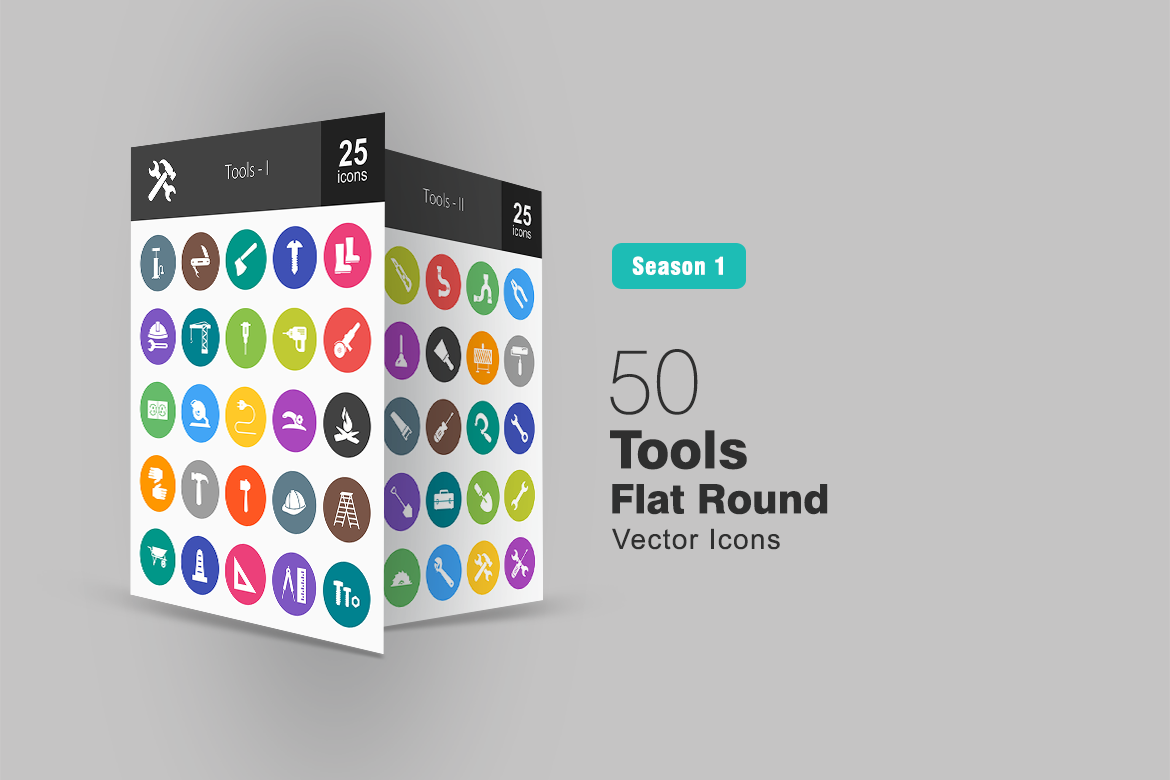 Download Набор иконок "50 Tools Flat Round Icon Set" / 50 Tools Flat Round Icon Set - Набор иконок на тему графика tools icon knife axe nut and bolt construction crane machine driller electric plug wire tap flame gloves hammer hat ladder