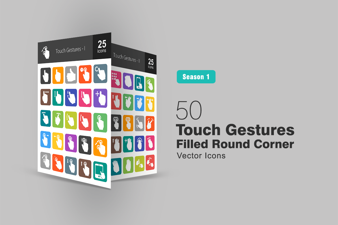 Download Набор иконок "50 Touch Gestures Filled Round Corner Icon Set" / 50 Touch Gestures Filled Round Corner Icon Set - Набор иконок на тему графика touch gestures icon hand mouse click like rotate scroll zoom out in move swipe tap double pattern device screen drag