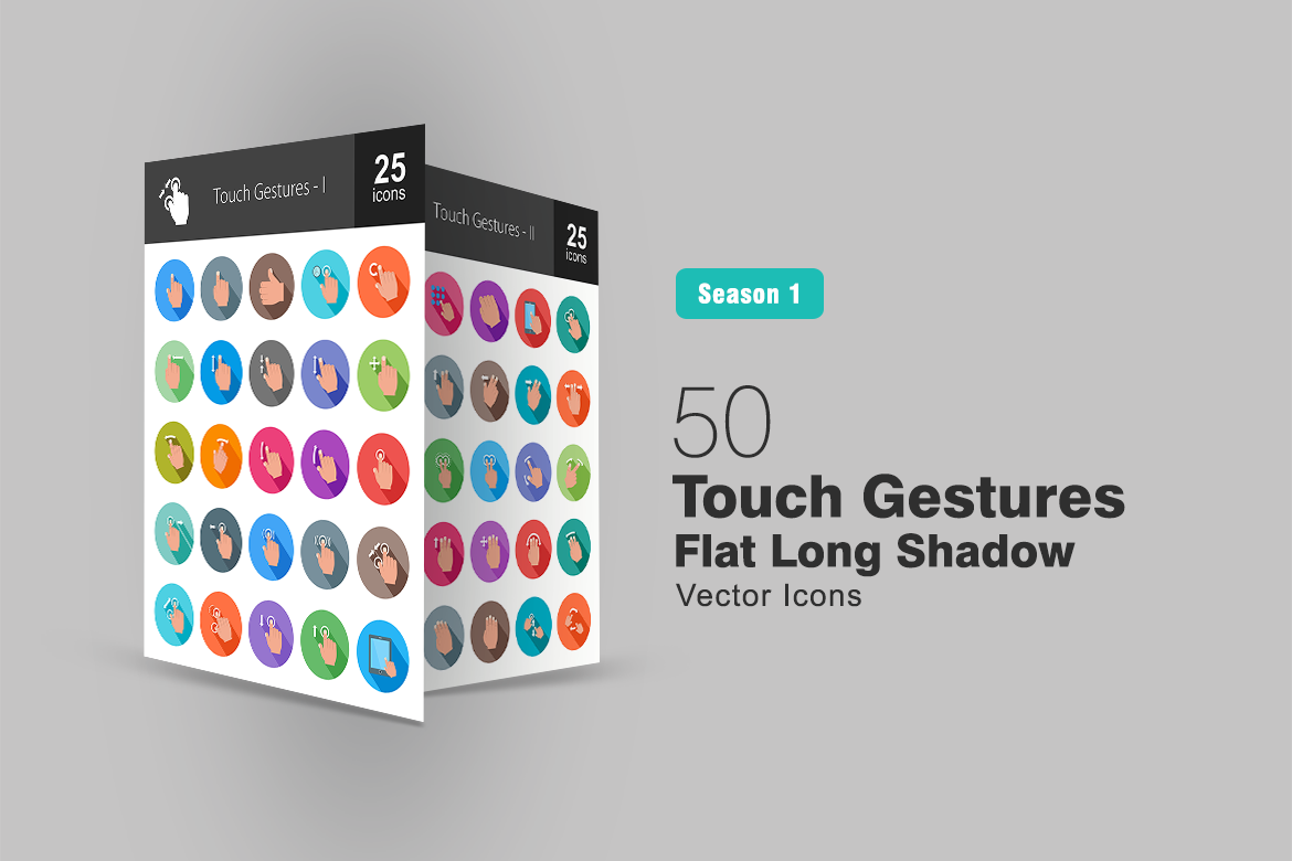 Download Набор иконок "50 Touch Gestures Flat Long Shadow Icon Set" / 50 Touch Gestures Flat Long Shadow Icon Set - Набор иконок на тему графика touch gestures icon hand mouse click like rotate scroll zoom out in move swipe tap double pattern device screen drag