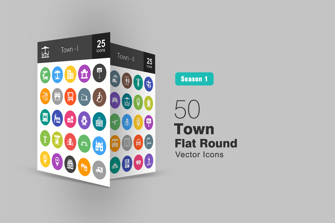 Download Набор иконок "50 Town Flat Round Icon Set" / 50 Town Flat Round Icon Set - Набор иконок на тему графика town,icon,theater,lifestyle,airport,park,bank,apartments,bridge,bus,stop,entrance,factory,fast,food,hotel,fountain,gas,station,graveyard