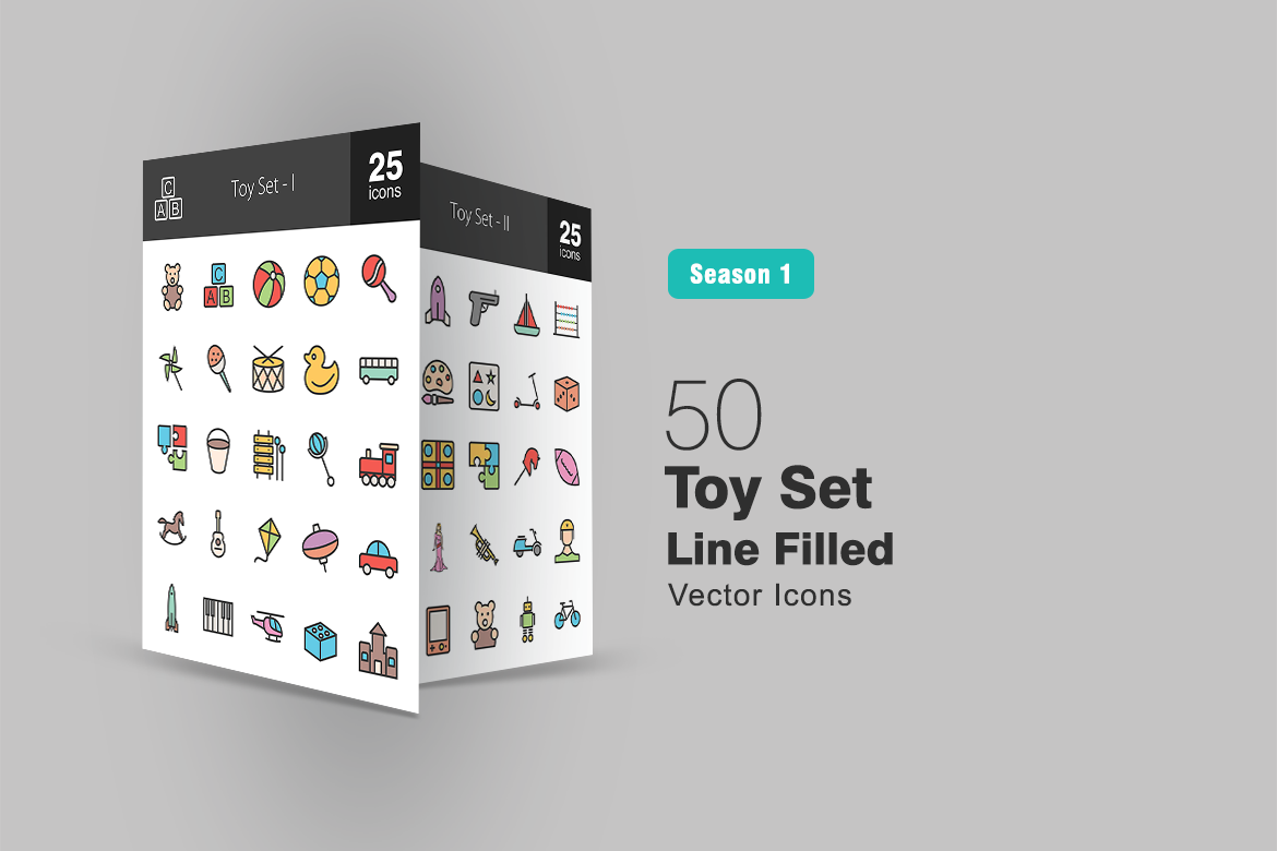 Download Набор иконок "50 Toy Set Filled Line Icon" / 50 Toy Set Filled Line Icon - Набор иконок на тему графика toys icon stuffed bear doll ball truck puzzle toy car robot soldier balloons gun train piano bicycle guitar beads game