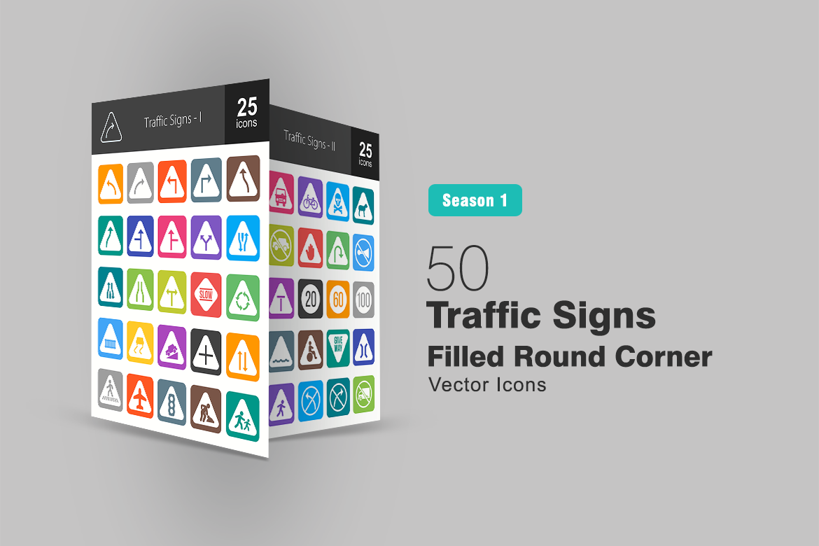 Download Набор иконок "50 Traffic Signs Filled Round Corner Icon Set" / 50 Traffic Signs Filled Round Corner Icon Set - Набор иконок на тему графика traffic icon signs curve turn signal bend lane horn danger sign give way stop railway dead end bridge speed limit
