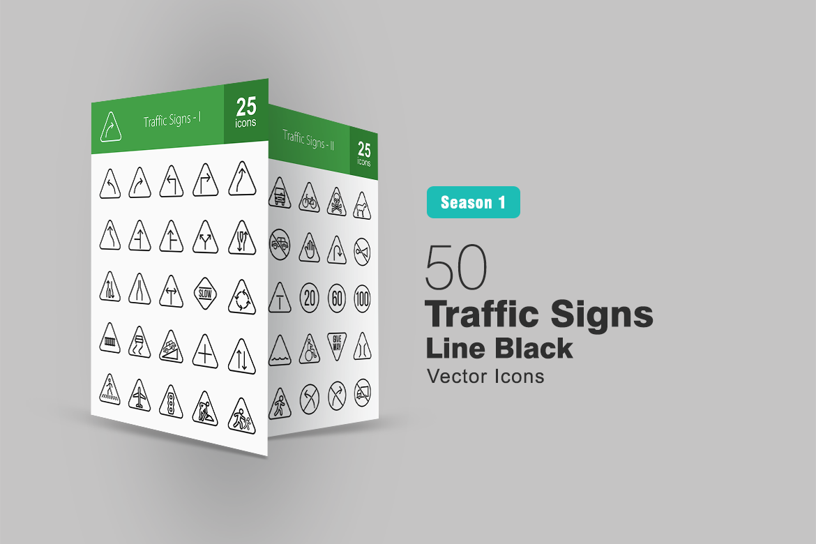 Download Набор иконок "50 Traffic Signs Line Icon Set" / 50 Traffic Signs Line Icon Set - Набор иконок на тему графика traffic icon signs curve turn signal bend lane horn danger sign give way stop railway dead end bridge speed limit