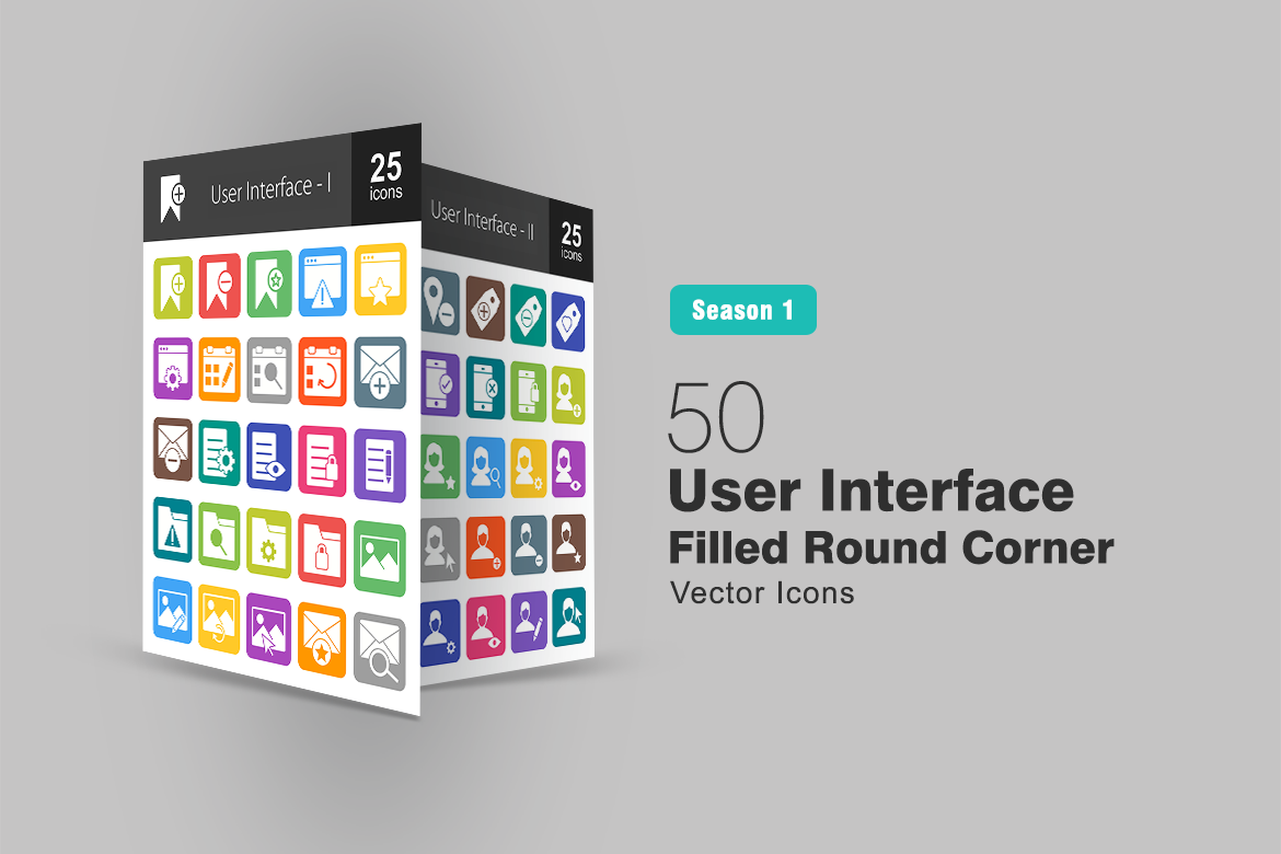 Download Набор иконок "50 User Interface Filled Round Corner Icon Set" / 50 User Interface Filled Round Corner Icon Set - Набор иконок на тему графика user interface icon bookmark browser favourite webpage event sync envelop email document folder search view edit image location tag device