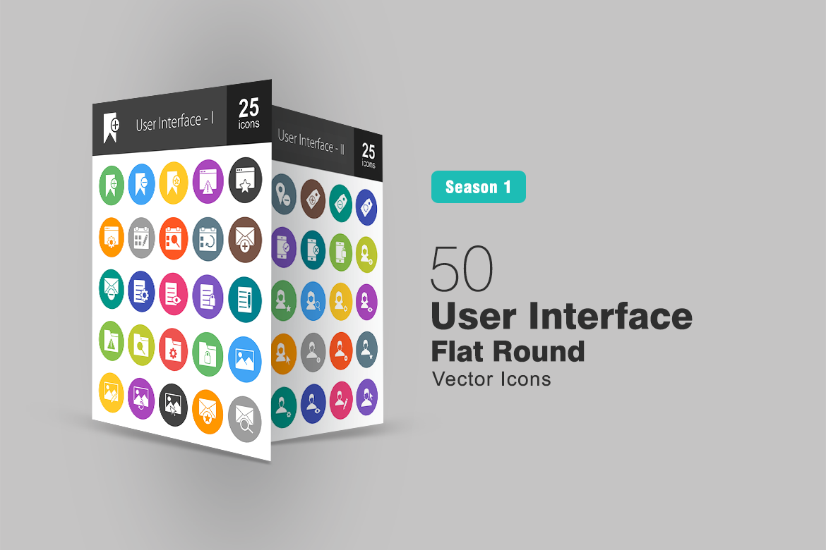 Download Набор иконок "50 User Interface Flat Round Icon Set" / 50 User Interface Flat Round Icon Set - Набор иконок на тему графика user interface icon bookmark browser favourite webpage event sync envelop email document folder search view edit image location tag device