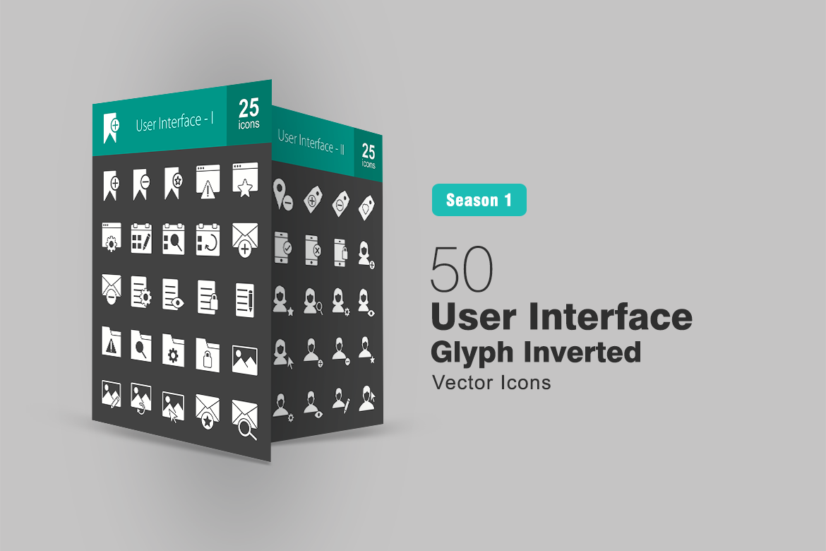 Download Набор иконок "50 User Interface Glyph Inverted Icon Set" / 50 User Interface Glyph Inverted Icon Set - Набор иконок на тему графика user interface icon bookmark browser favourite webpage event sync envelop email document folder search view edit image location tag device