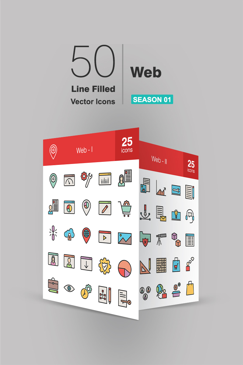 Download Набор иконок "50 Web Filled Line Icon Set" / 50 Web Filled Line Icon Set - Набор иконок на тему графика web icon location page preferences statistics webpage ecommerce link building cloud global streaming album visitor download security settings briefcase pie