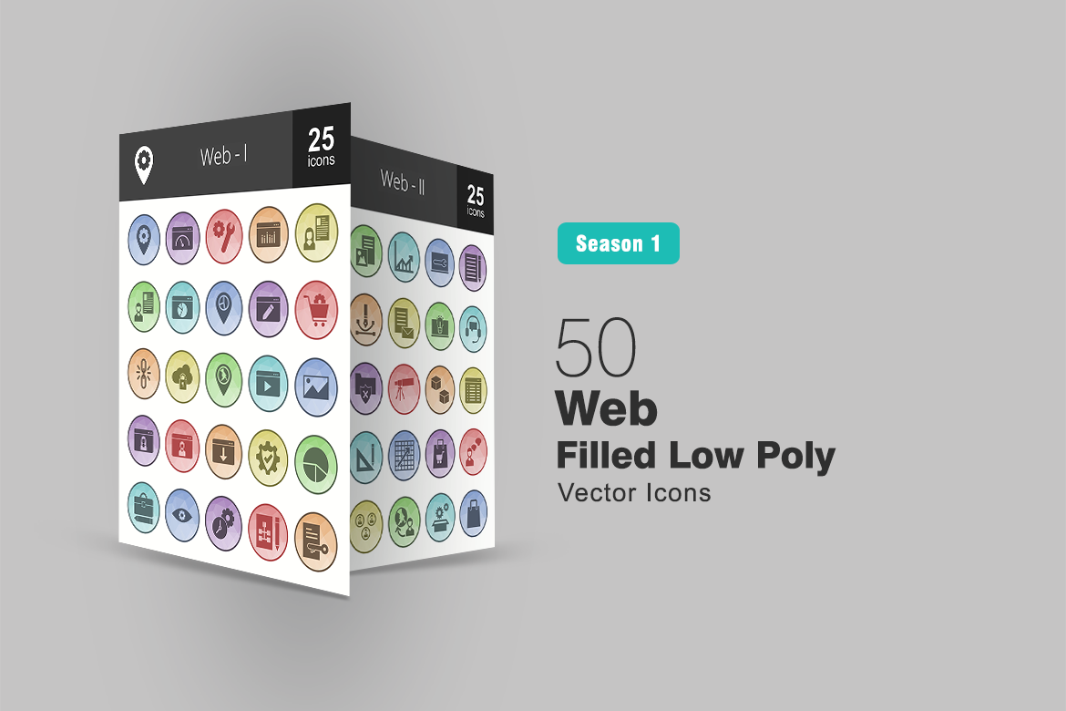 Download Набор иконок "50 Web Filled Low Poly Icon Set" / 50 Web Filled Low Poly Icon Set - Набор иконок на тему графика web,icon,location,page,preferences,statistics,webpage,ecommerce,link,building,cloud,global,streaming,album,visitor,download,security,settings,briefcase,pie