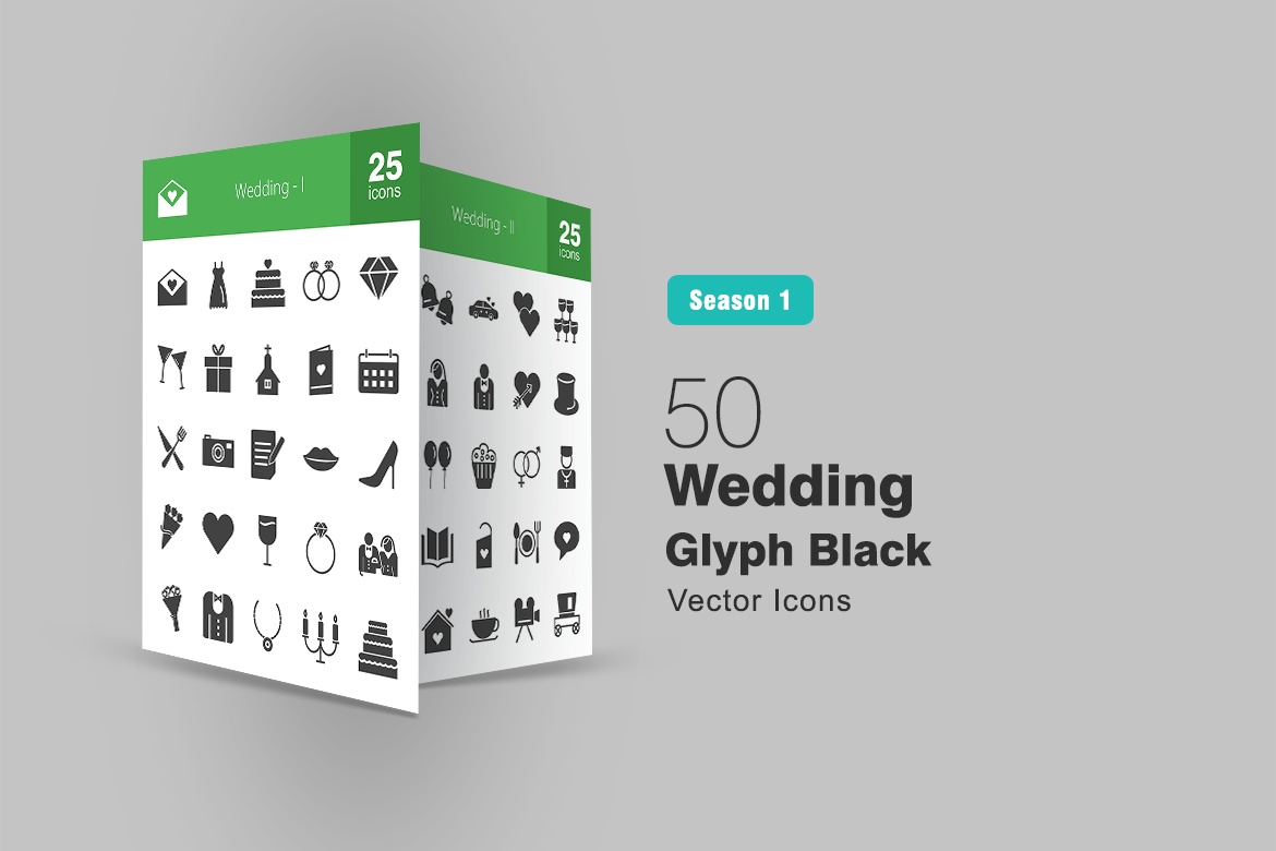Download Набор иконок "50 Wedding Glyph Icon Set" / 50 Wedding Glyph Icon Set - Набор иконок на тему графика wedding icon bride groom cake rings invitation calendar date flowers drinks necklace music coffee dinner heels heart bells iconbunny flat