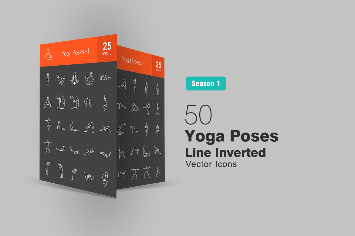 Download Набор иконок "50 Yoga Poses Line Inverted Icon Set" / 50 Yoga Poses Line Inverted Icon Set - Набор иконок на тему графика yoga,icon,pose,toes,bridge,buddhist,camel,cat,cobra,hare,extended,fish,boat,knee,press,lunge,mountain,plank,plow,headstand