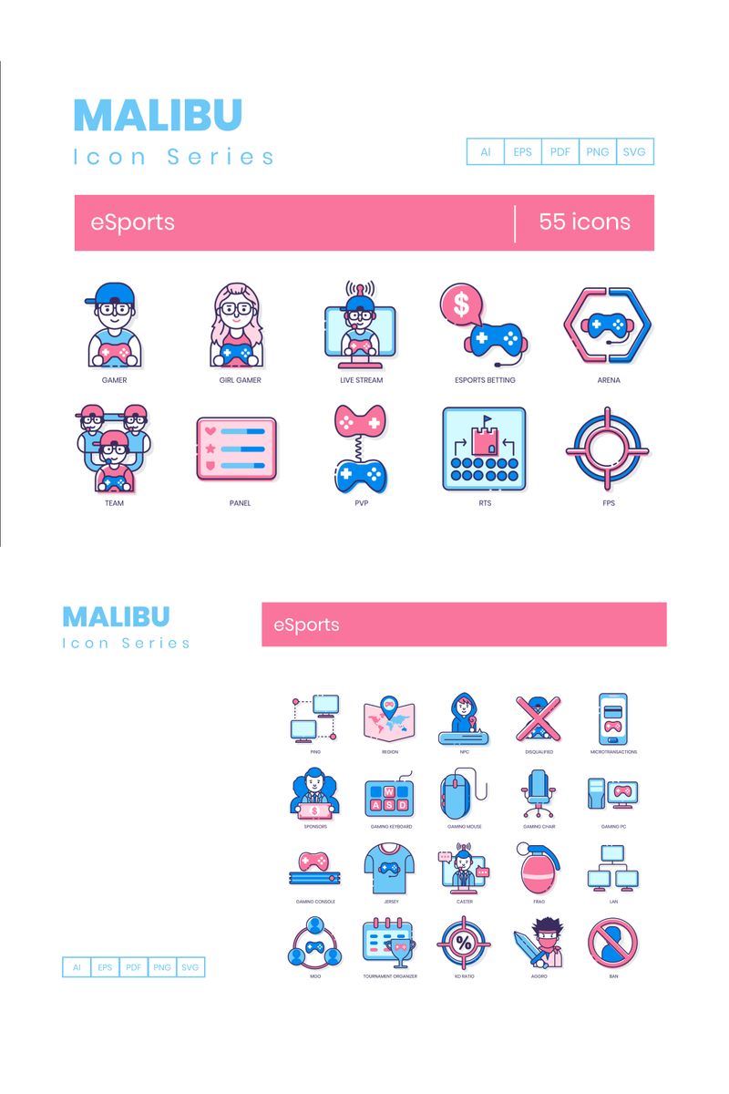 Download Набор иконок "55 eSports Icons - Malibu Series Set" / 55 eSports Icons - Malibu Series Set - Набор иконок на тему графика