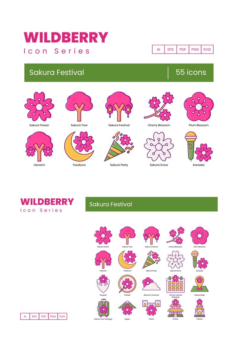 Download Набор иконок "55 Sakura Festival Icons - Wildberry Series Set" / 55 Sakura Festival Icons - Wildberry Series Set - Набор иконок на тему графика