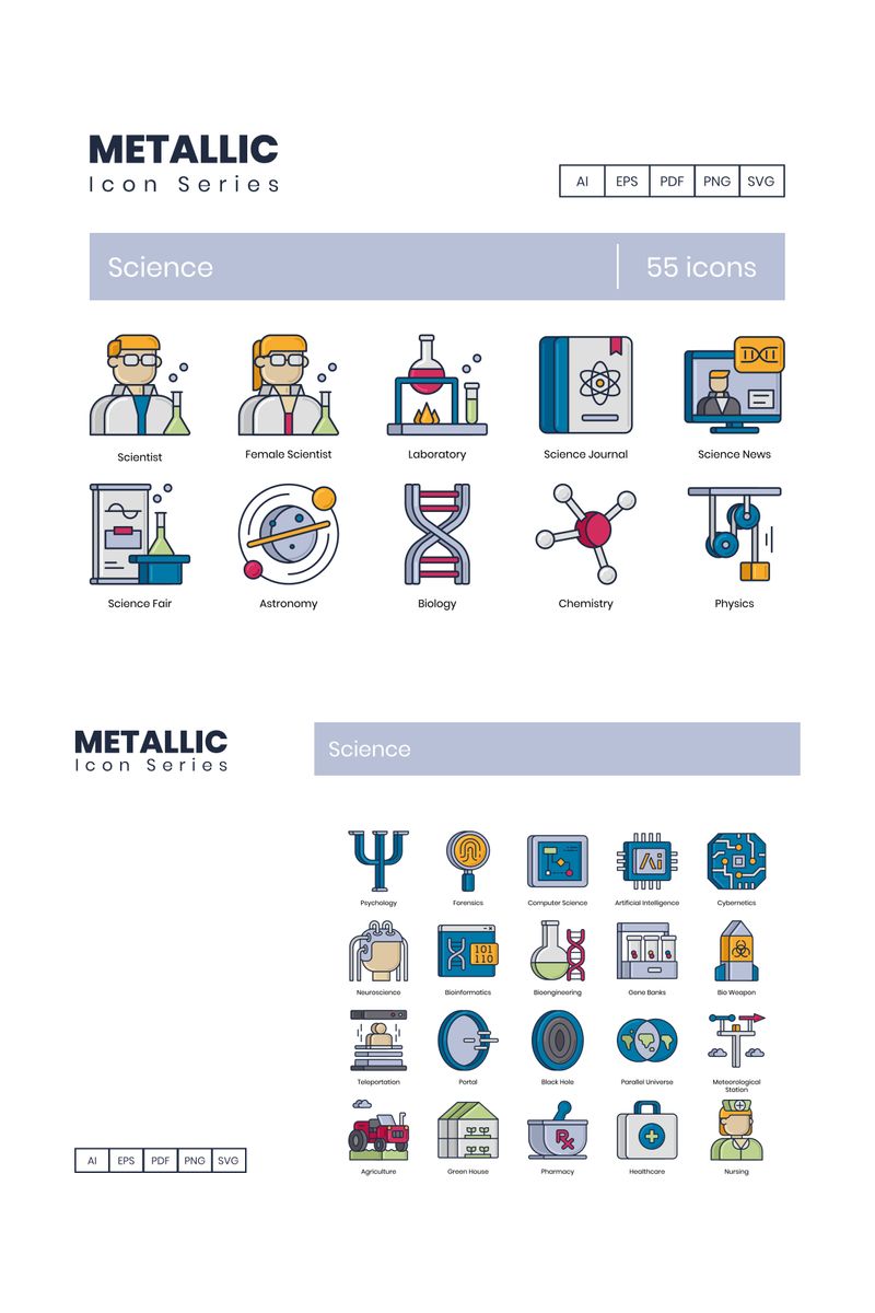 Download Набор иконок "55 Science Icons - Metallic Series Set" / 55 Science Icons - Metallic Series Set - Набор иконок на тему графика