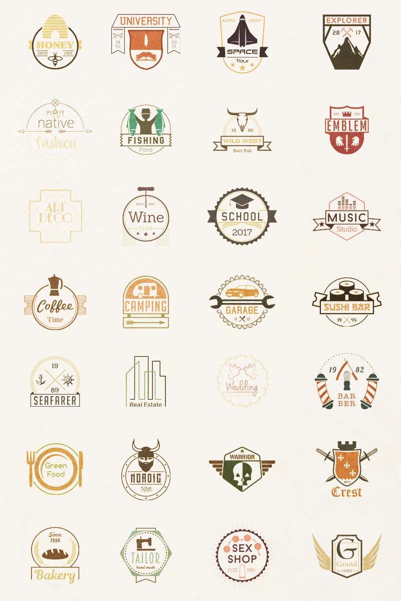 Download Бандл 570 шаблонов логотипов / 570+ Logos Templates Logo Template - Шаблон логотипа на тему графика vintage badge retro symbol sign label design sticker emblem graphic banner vector quality element logo premium stamp set product typography