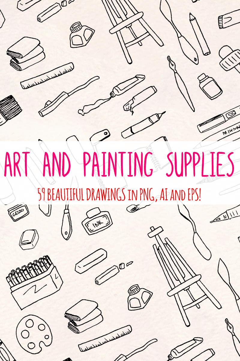 Download Иллюстрация "59 Art and Painting Supplies - Art Themed Vector Elements - Illustration" / 59 Art and Painting Supplies - Art Themed Vector Elements - Illustration - Иллюстрация на тему графика art clipart graphics painting clip stationery class transparent png ai eps artist coloring
