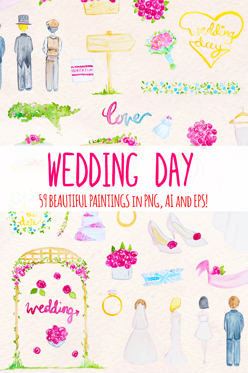 Download Иллюстрация "59 Floral Wedding Day - Illustration" / 59 Floral Wedding Day - Illustration - Иллюстрация на тему графика watercolour watercolor blog graphics clip art commercial use wedding day pink floral invitaiton diy