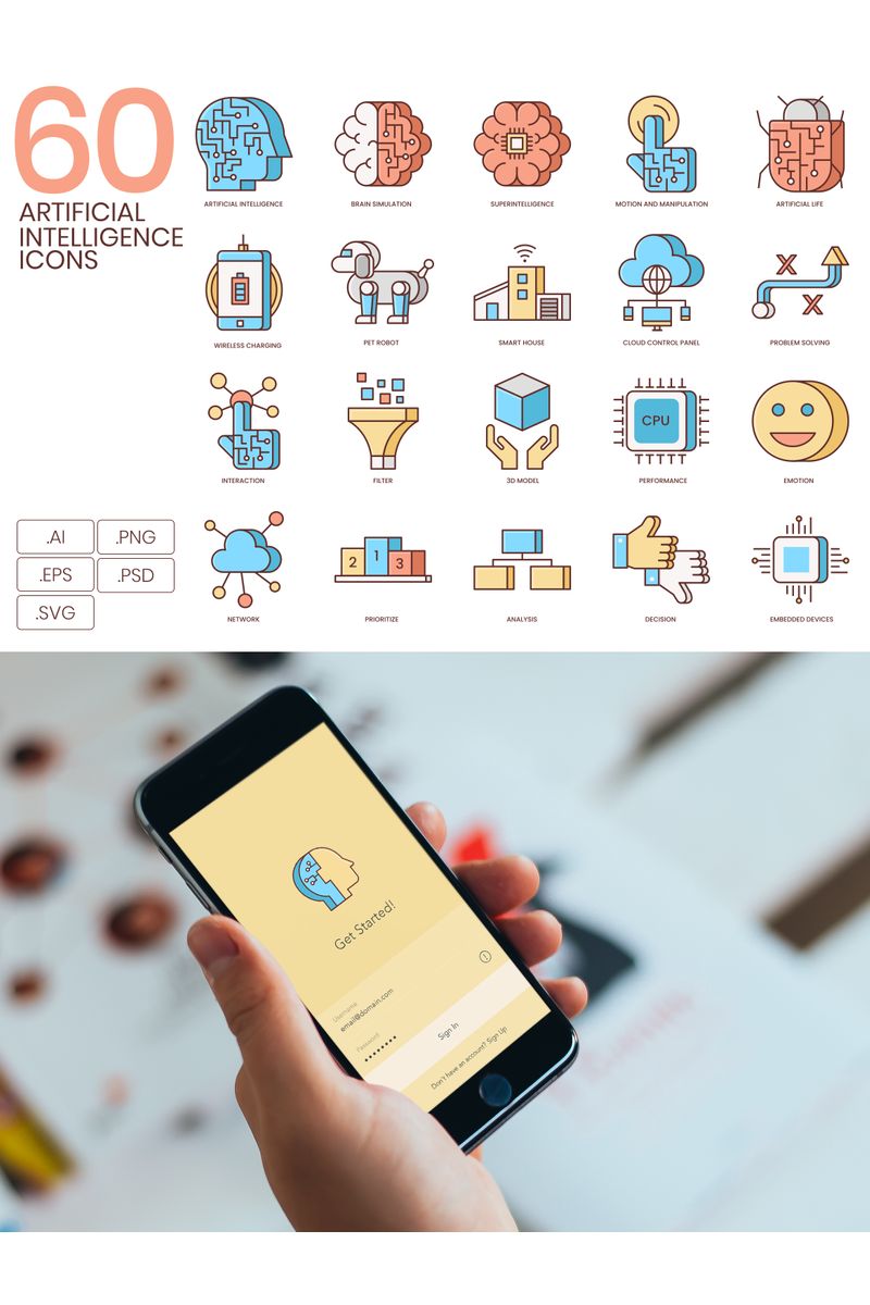 Download Набор иконок "60 Artificial Intelligence Icons - Honey Series Set" / 60 Artificial Intelligence Icons - Honey Series Set - Набор иконок на тему графика