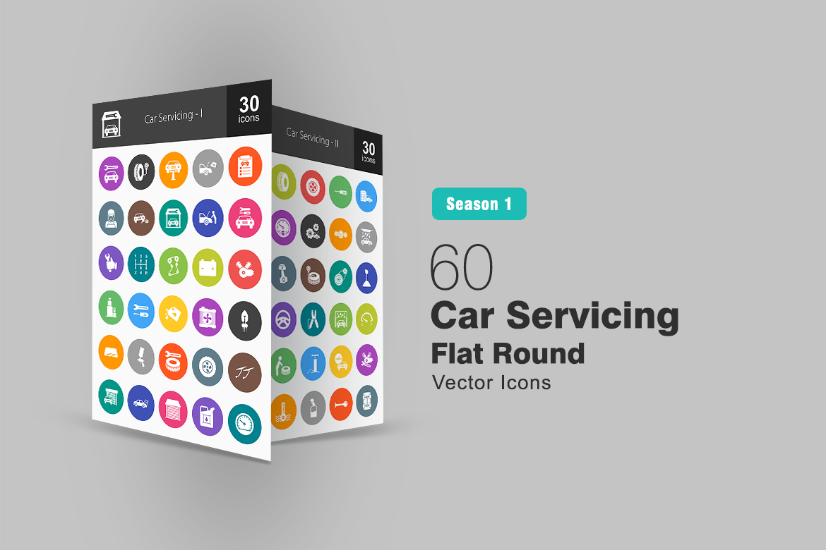 Download Набор иконок "60 Car Servicing Flat Round Icon Set" / 60 Car Servicing Flat Round Icon Set - Набор иконок на тему графика car icon servicing repair tyre oil mechanic service station engine wrench shifter battery motor jack tools windshield garage auto mobile