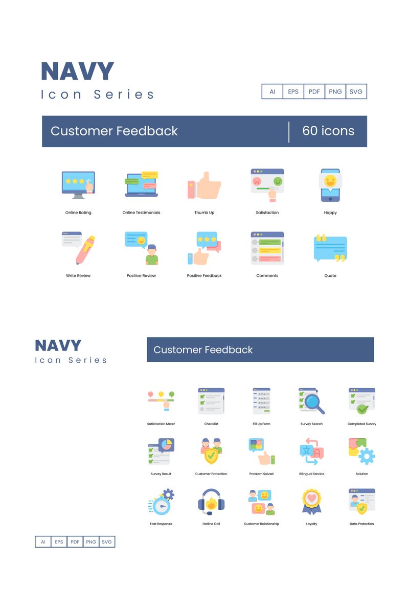 Download Набор иконок "60 Customer Feedback Icons - Navy Series Set" / 60 Customer Feedback Icons - Navy Series Set - Набор иконок на тему графика