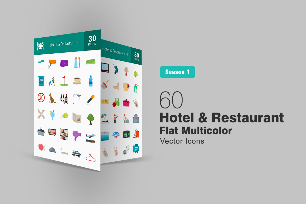 Download Набор иконок "60 Hotel & Restaurant Flat Multicolor Icon Set" / 60 Hotel & Restaurant Flat Multicolor Icon Set - Набор иконок на тему графика hotel icon restaurant vacations luggage aeroplane dinner cigarette van security lock directions drink bed waiter lunch wifi connection bowling beach