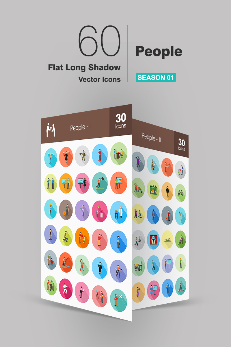 Download Набор иконок "60 People Flat Long Shadow Icon Set" / 60 People Flat Long Shadow Icon Set - Набор иконок на тему графика people icon human soldier waiter boss chef chemist cowboy criminal child magician man girl ninja police reading presenting jumping saluting