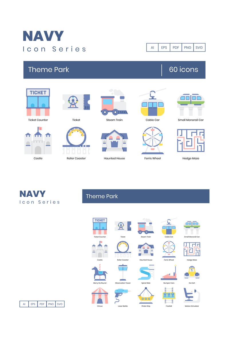 Download Набор иконок "60 Theme Park Icons - Navy Series Set" / 60 Theme Park Icons - Navy Series Set - Набор иконок на тему графика