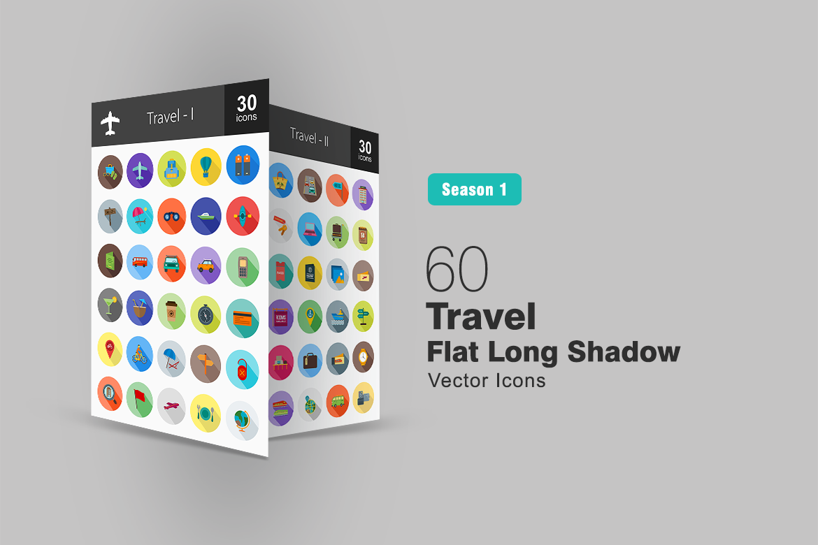 Download Набор иконок "60 Travel Flat Long Shadow Icon Set" / 60 Travel Flat Long Shadow Icon Set - Набор иконок на тему графика travel icon aeroplane beach boat bus car compass cycling location directions hotel flight globe highway luggage passport pictures tickets rent