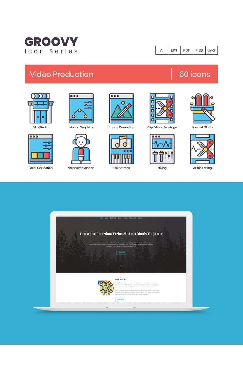 Download Набор иконок "60 Video Production Icons - Groovy Series Set" / 60 Video Production Icons - Groovy Series Set - Набор иконок на тему графика