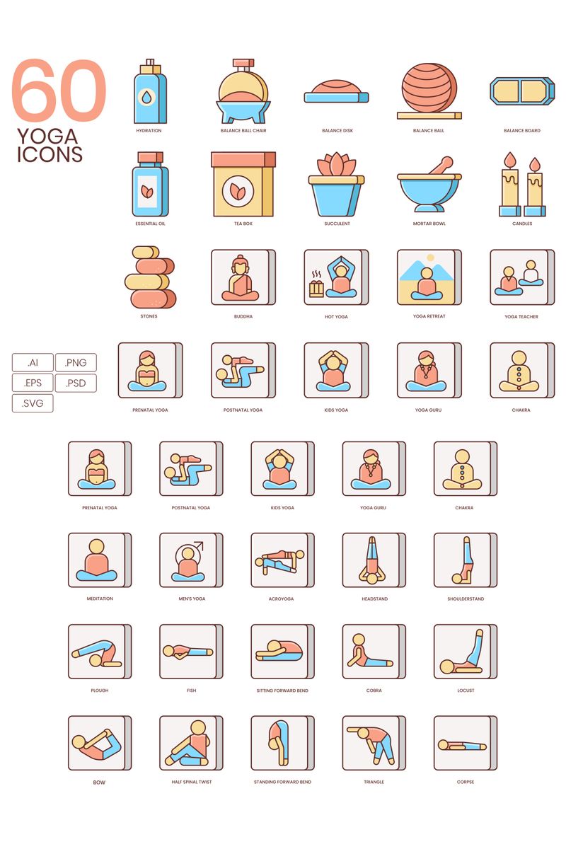 Download Набор иконок "60 Yoga Icons - Honey Series Set" / 60 Yoga Icons - Honey Series Set - Набор иконок на тему графика