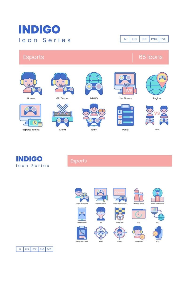 Download Набор иконок "65 eSports Icons - Indigo Series Set" / 65 eSports Icons - Indigo Series Set - Набор иконок на тему графика