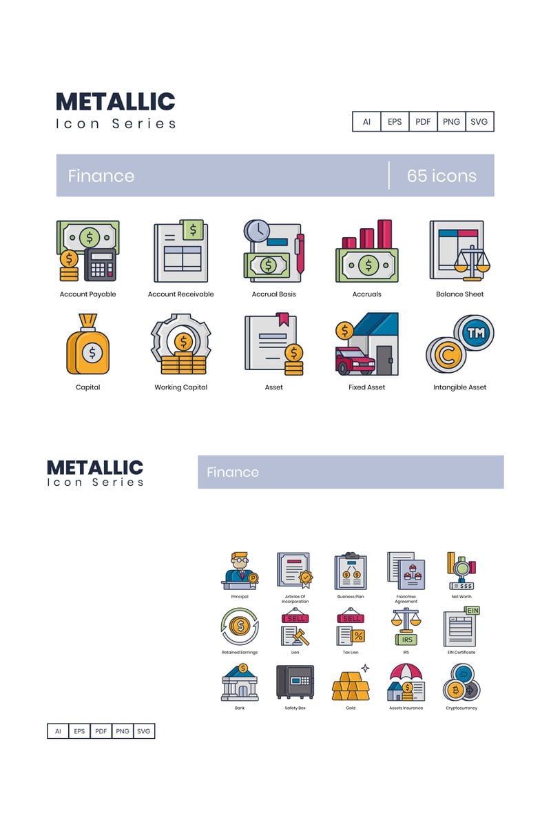Download Набор иконок "65 Finance Icons - Metallic Series Set" / 65 Finance Icons - Metallic Series Set - Набор иконок на тему графика