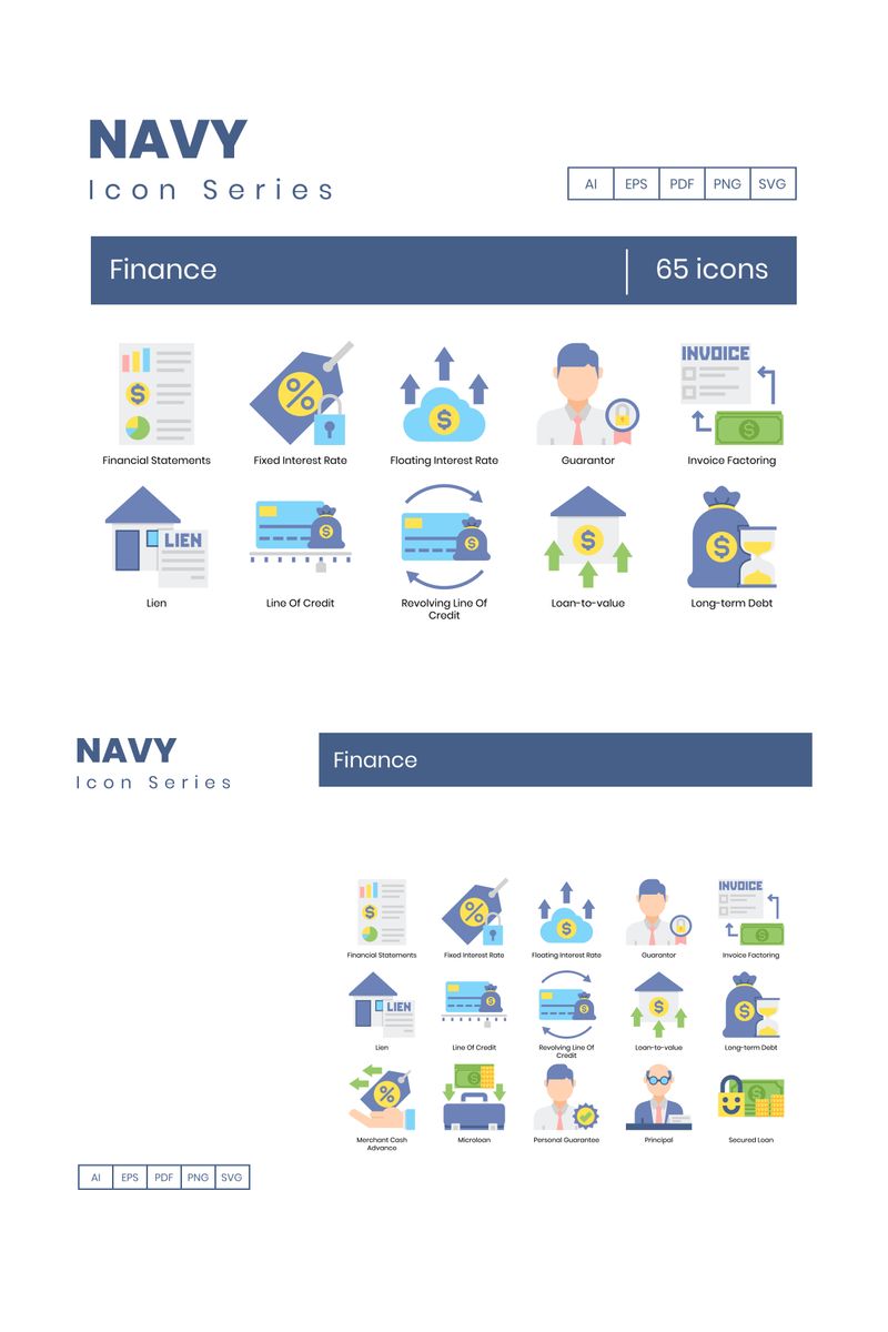 Download Набор иконок "65 Finance Icons - Navy Series Set" / 65 Finance Icons - Navy Series Set - Набор иконок на тему графика