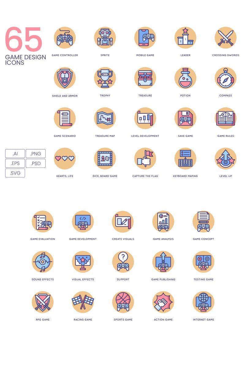 Download Набор иконок "65 Game Design Icons - Butterscotch Series Set" / 65 Game Design Icons - Butterscotch Series Set - Набор иконок на тему графика