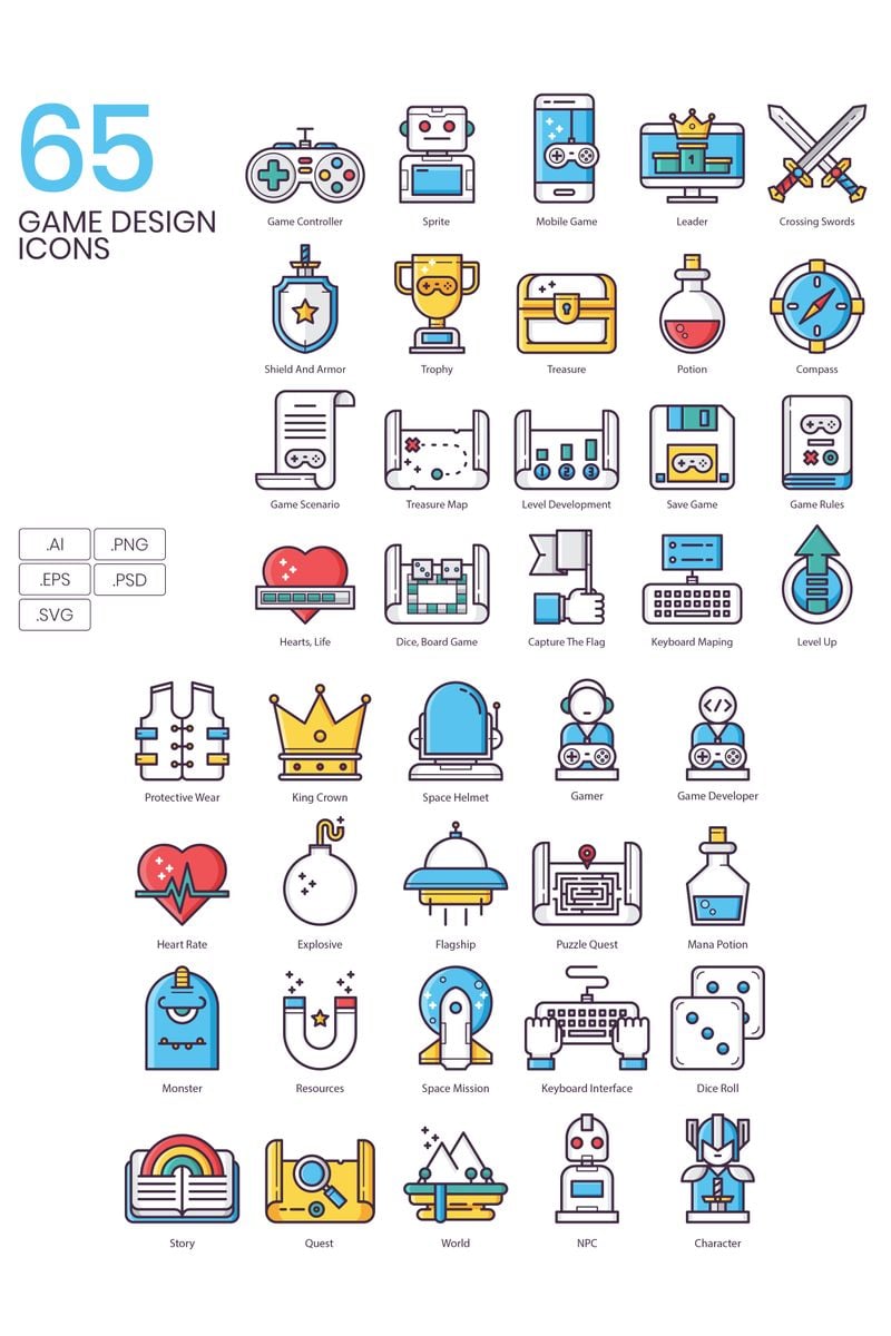 Download Набор иконок "65 Game Design Icons - Groovy Series Set" / 65 Game Design Icons - Groovy Series Set - Набор иконок на тему графика