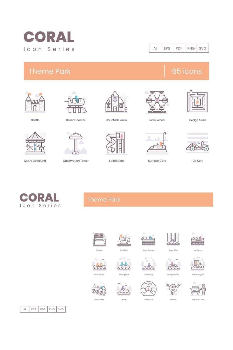 Download Набор иконок "65 Theme Park Icons - Coral Series Set" / 65 Theme Park Icons - Coral Series Set - Набор иконок на тему графика