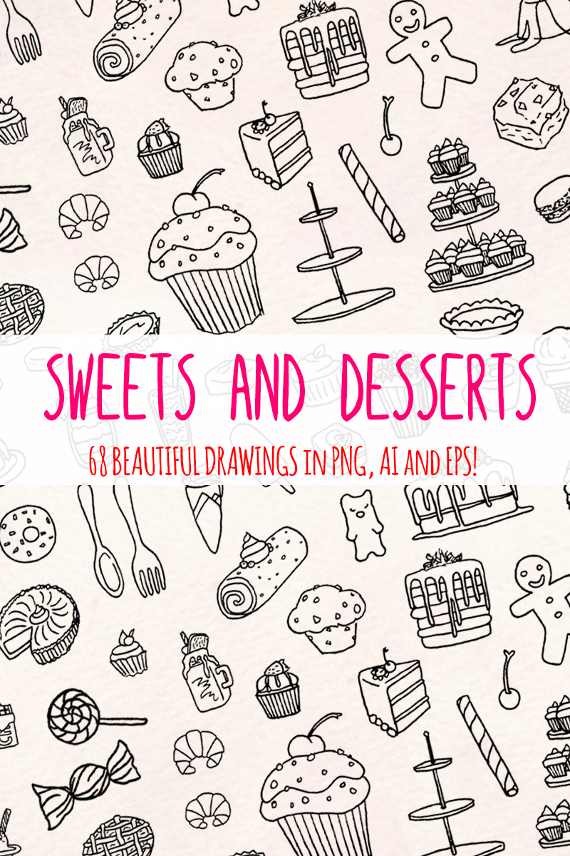 Download Иллюстрация "68 Sweets and Desserts - Illustration" / 68 Sweets and Desserts - Illustration - Иллюстрация на тему графика cakes desserts sweets cake graphics clipart dessert pastry pastries breakfast parfait commercial use chef