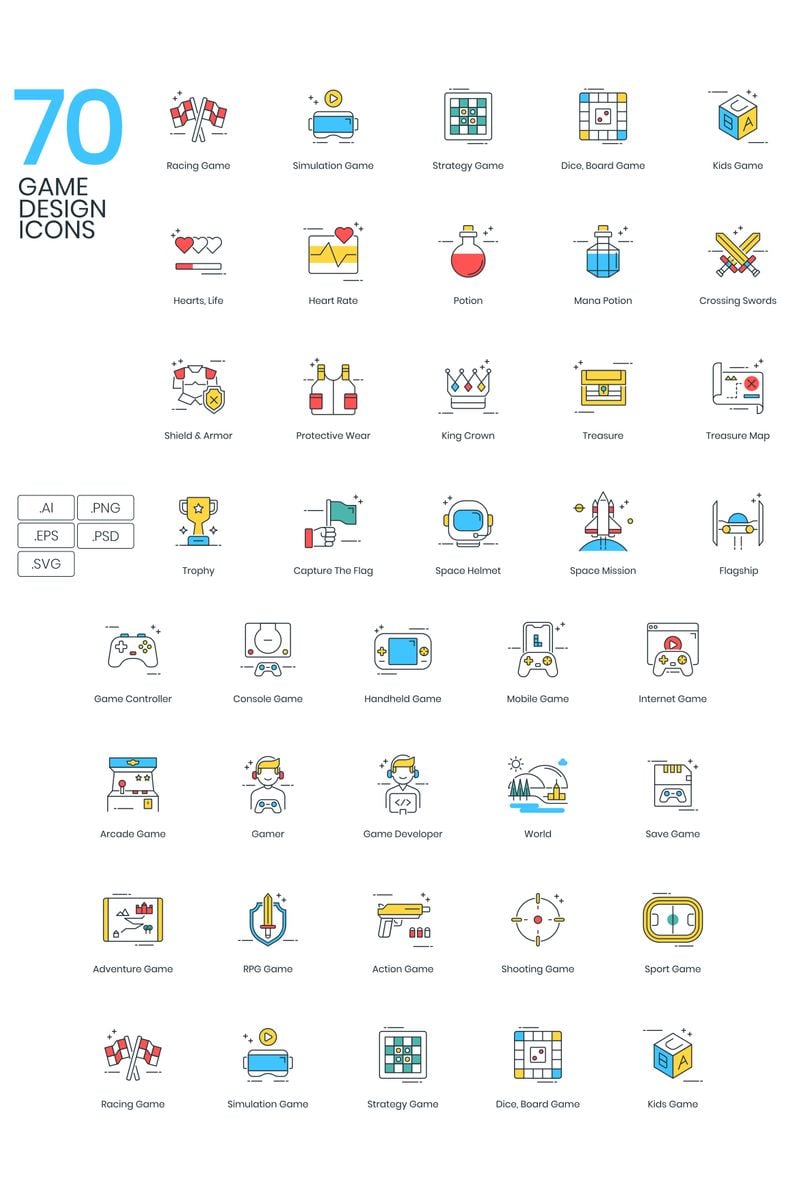 Download Набор иконок "70 Game Design Icons - ColorPop Series Set" / 70 Game Design Icons - ColorPop Series Set - Набор иконок на тему графика