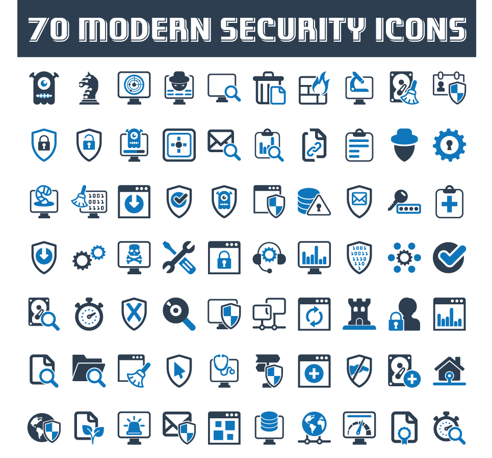 Download Набор иконок "70 Modern Security Icon Set" / 70 Modern Security Icon Set - Набор иконок на тему графика antivirus,business,danger,email,encryption,firewall,guard,icon,information,insurance,it,it security,key,lock,network,network security,padlock,password,pc,pin