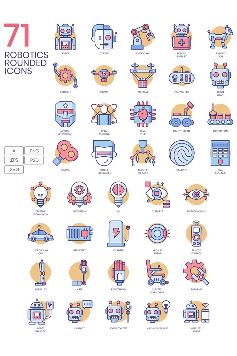 Download Набор иконок "71 Robotics Icons - Butterscotch Series Set" / 71 Robotics Icons - Butterscotch Series Set - Набор иконок на тему графика