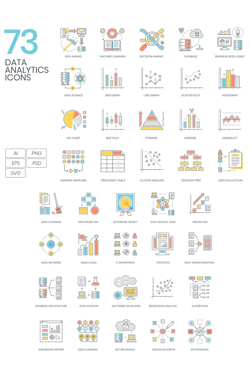 Download Набор иконок "73 Data Analytics Icons - ColorLine Series Set" / 73 Data Analytics Icons - ColorLine Series Set - Набор иконок на тему графика