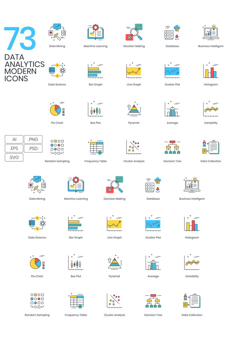 Download Набор иконок "73 Data Analytics Icons - ColorPop Series Set" / 73 Data Analytics Icons - ColorPop Series Set - Набор иконок на тему графика