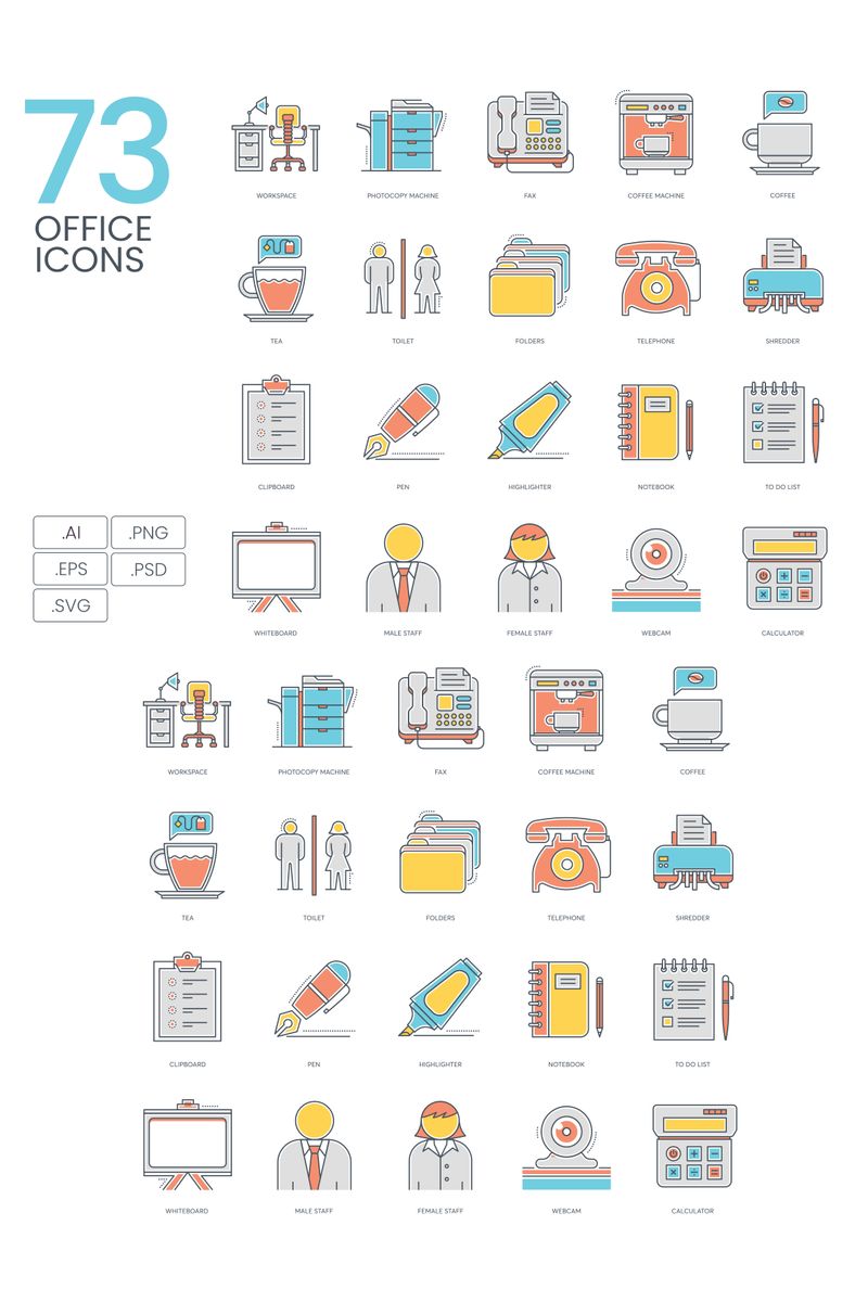 Download Набор иконок "73 Office Icons - ColorLine Series Set" / 73 Office Icons - ColorLine Series Set - Набор иконок на тему графика