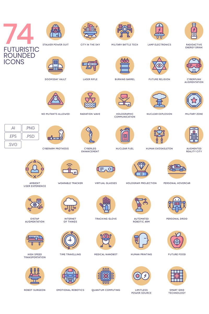 Download Набор иконок "74 Futuristic Icons - Butterscotch Series Set" / 74 Futuristic Icons - Butterscotch Series Set - Набор иконок на тему графика