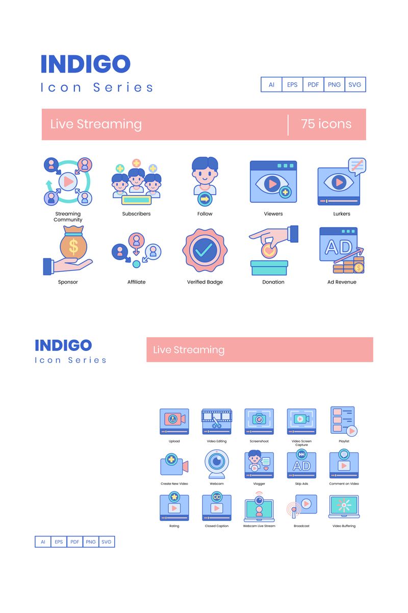 Download Набор иконок "75 Live Streaming Icons - Indigo Series Set" / 75 Live Streaming Icons - Indigo Series Set - Набор иконок на тему графика