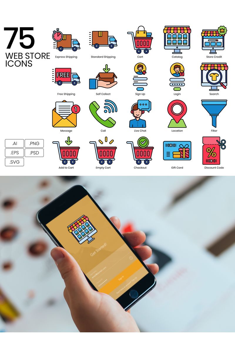 Download Набор иконок "75 Web Store Icons - Vivid Series Set" / 75 Web Store Icons - Vivid Series Set - Набор иконок на тему графика