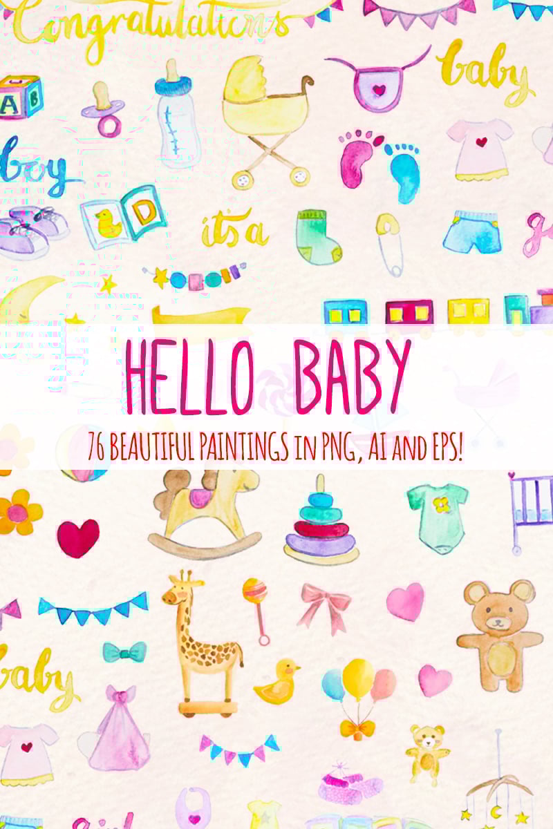 Download Иллюстрация "76 Baby Shower Watercolor - Illustration" / 76 Baby Shower Watercolor - Illustration - Иллюстрация на тему графика baby clip art boy clipart girl new cute watercolour party shower welcome watercolor